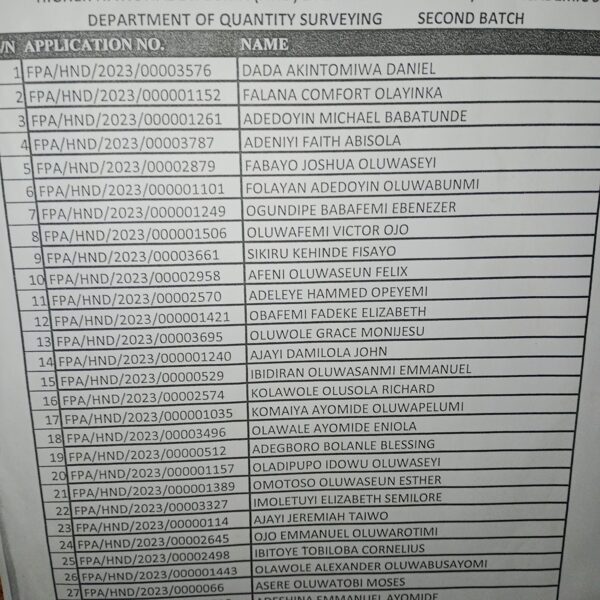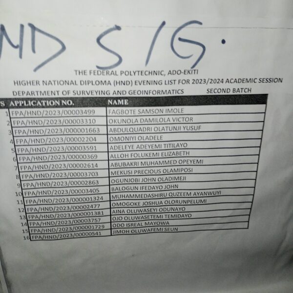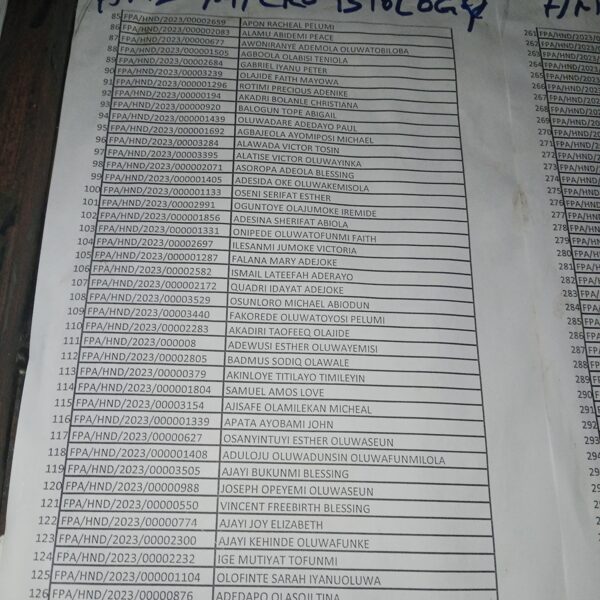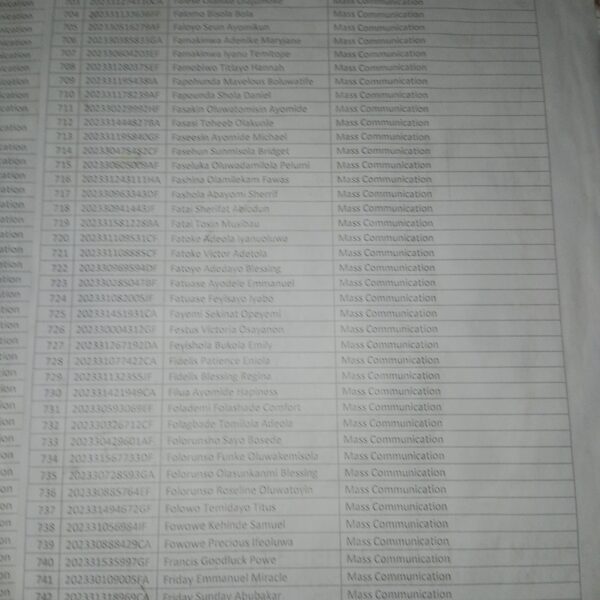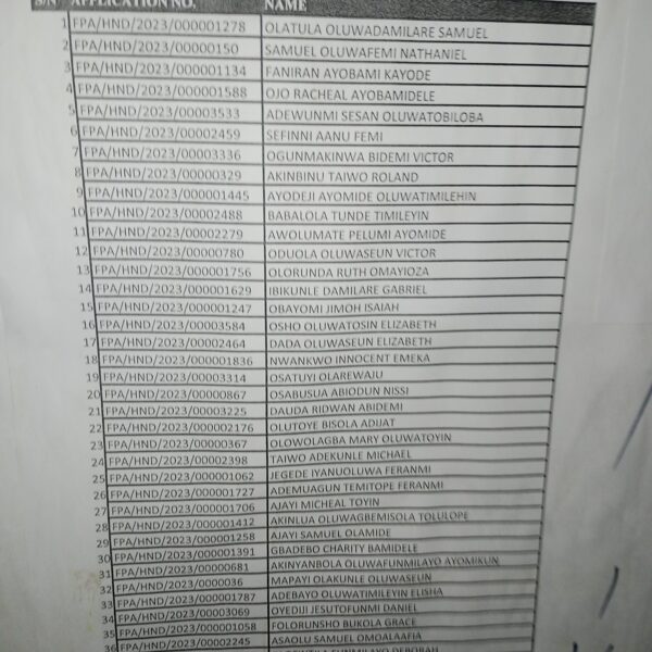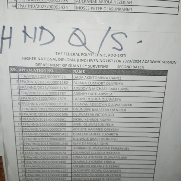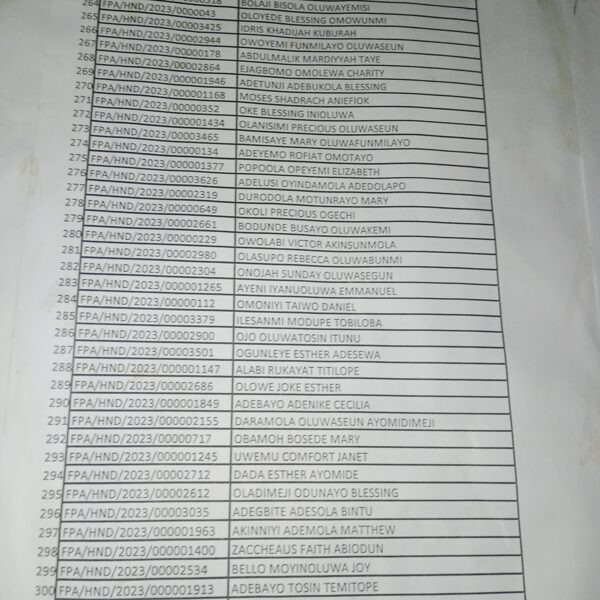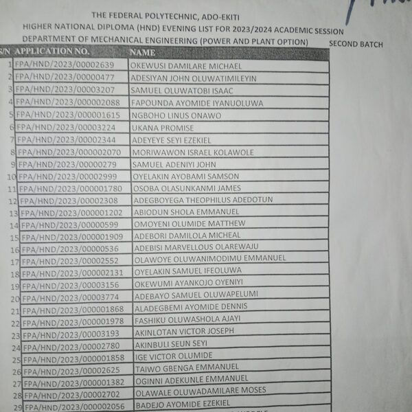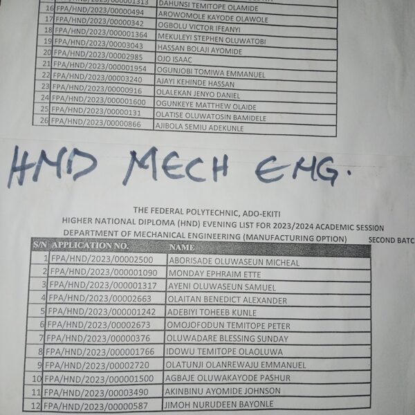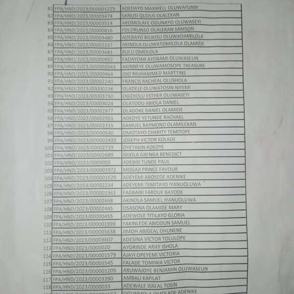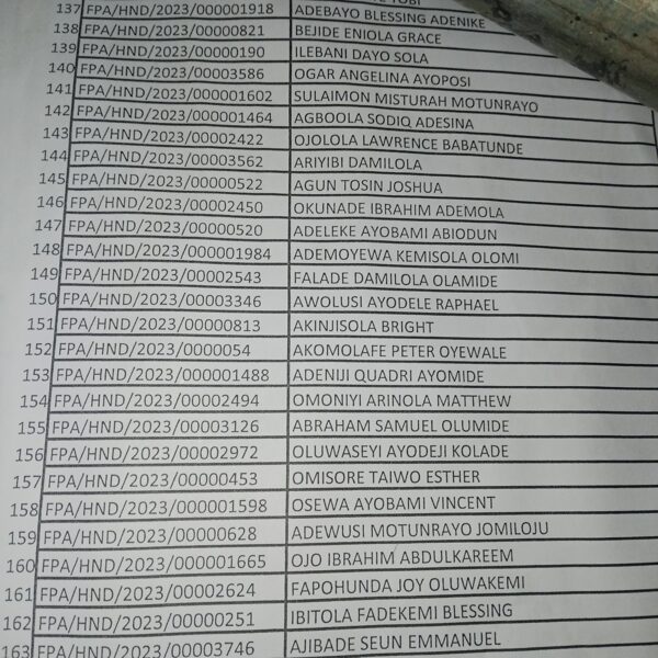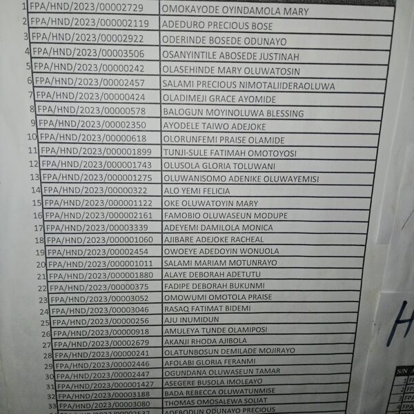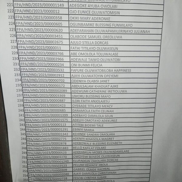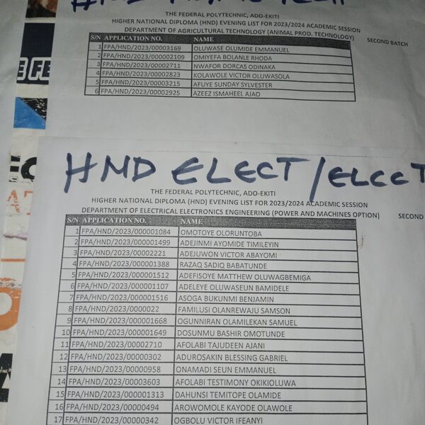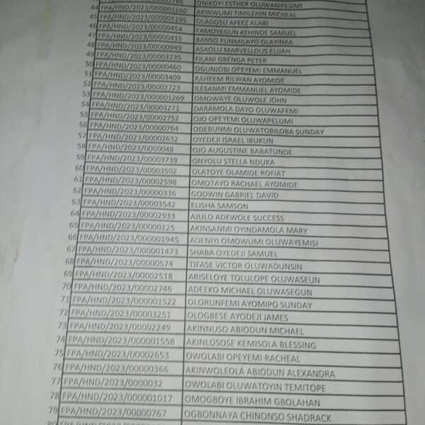 Admission list for HND evening