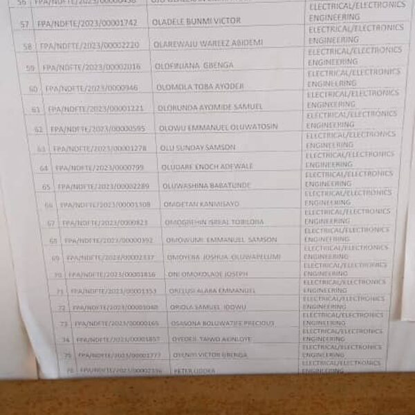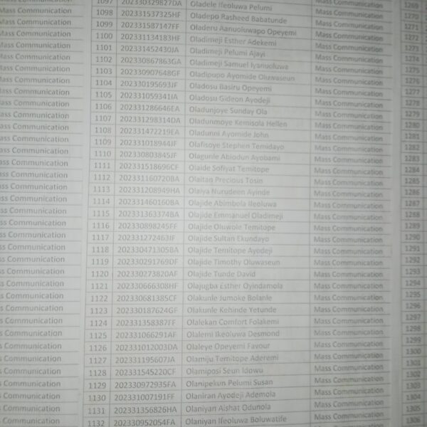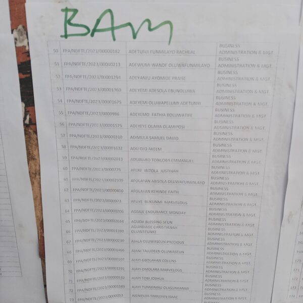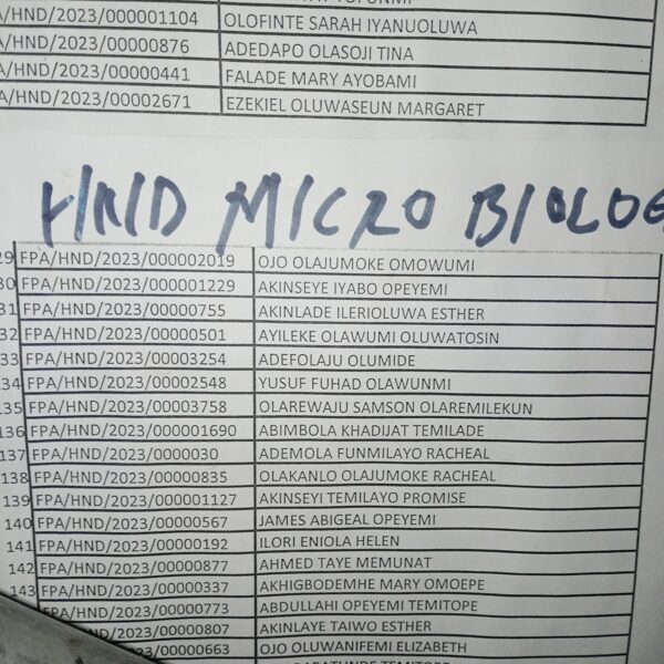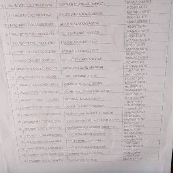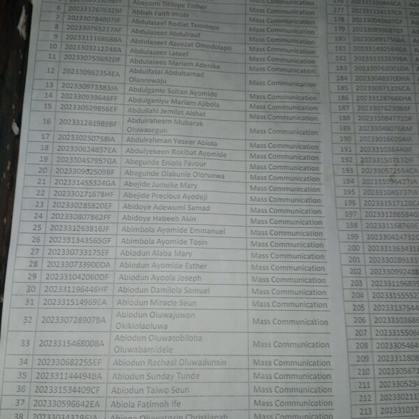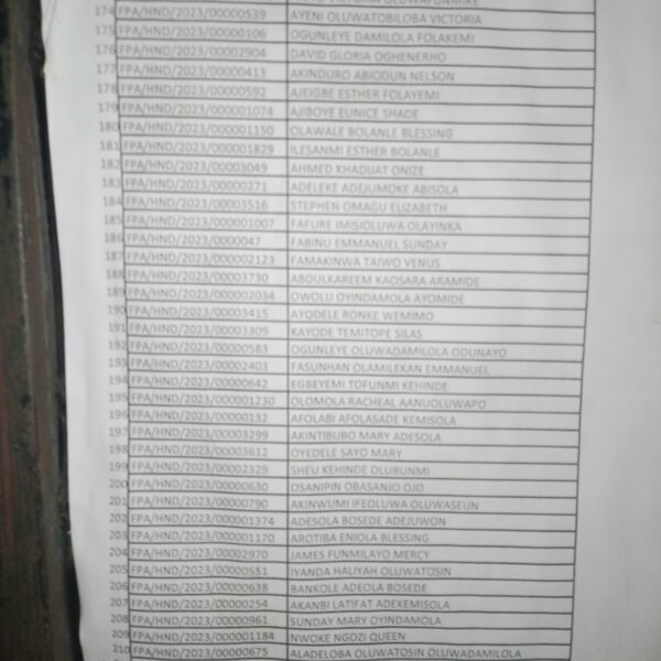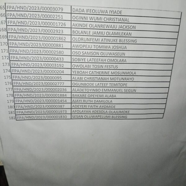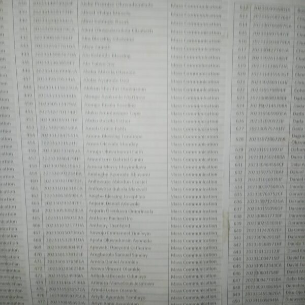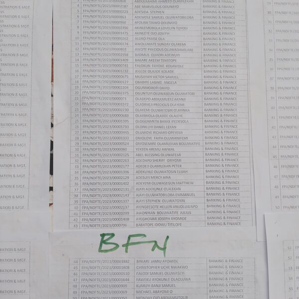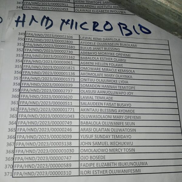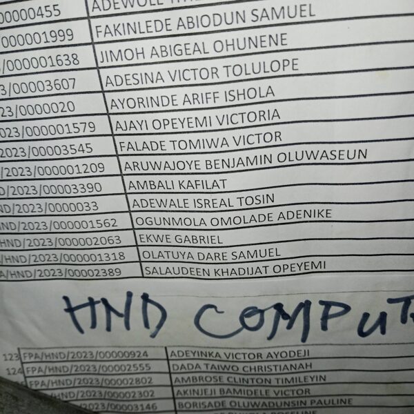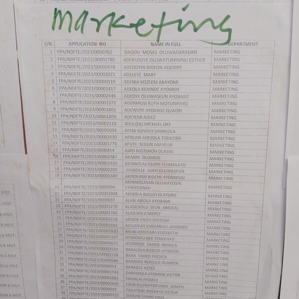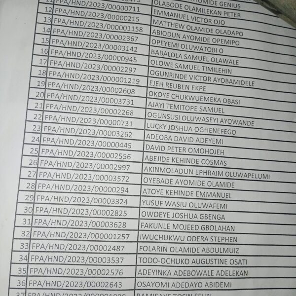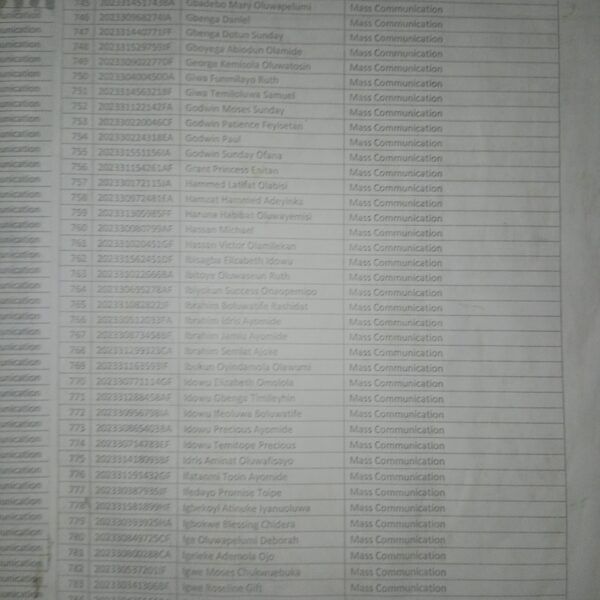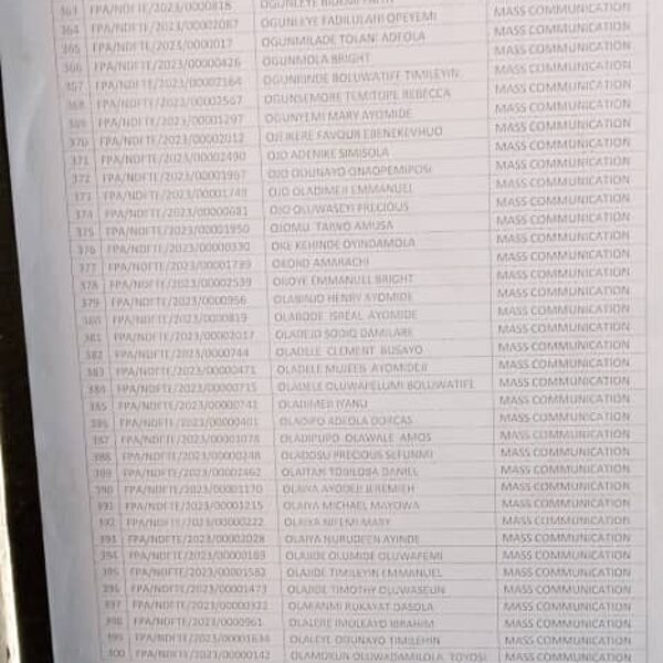 Admission list for HND evening