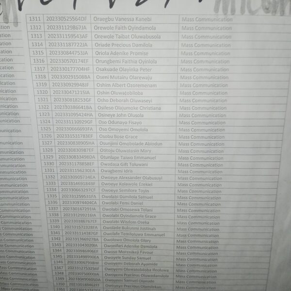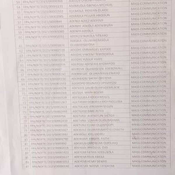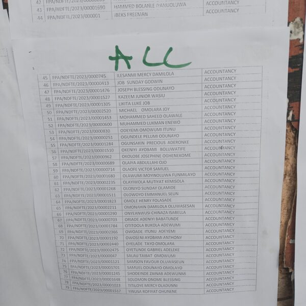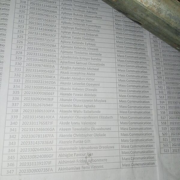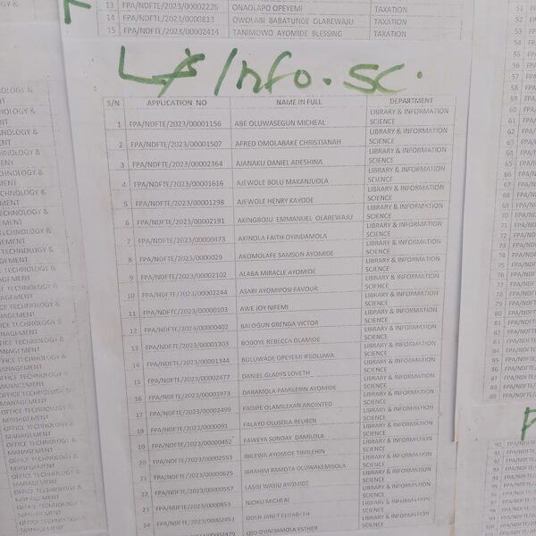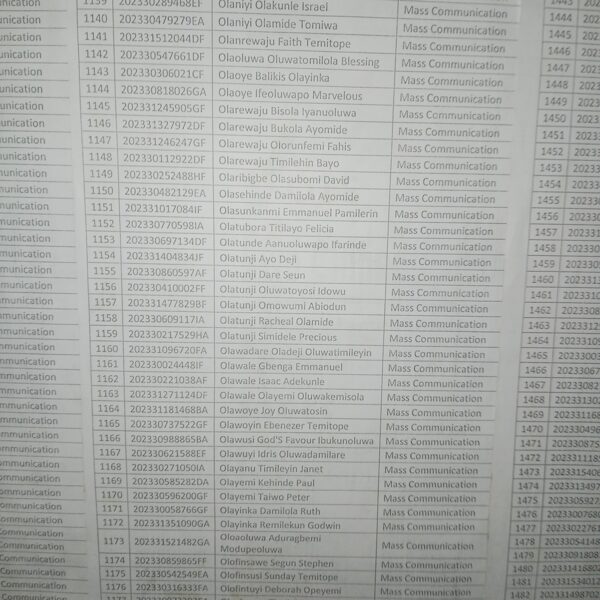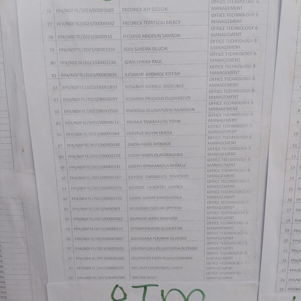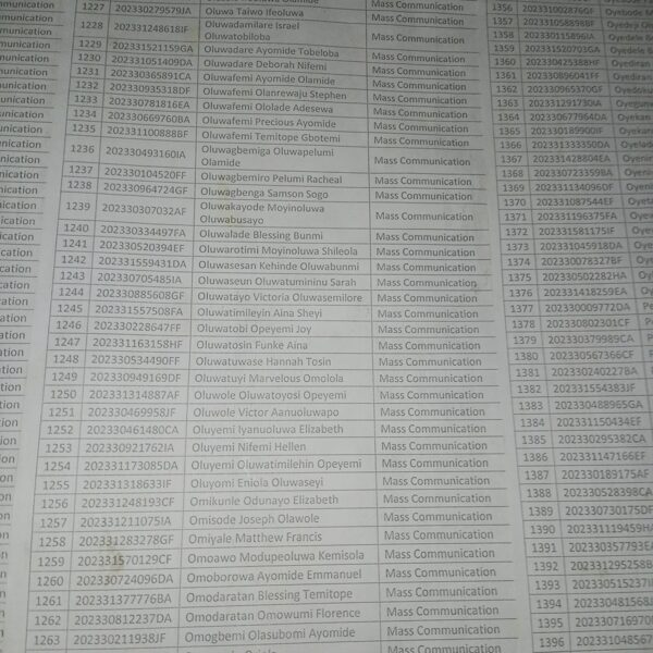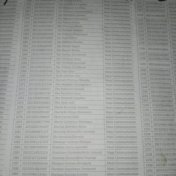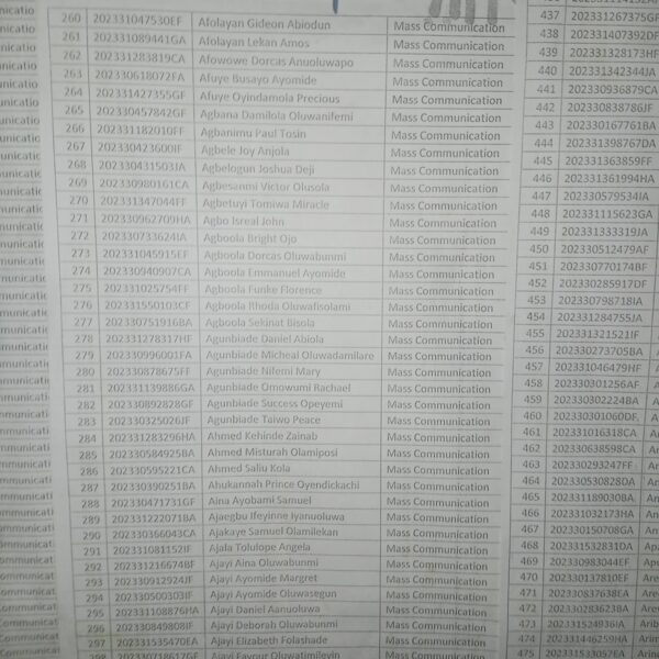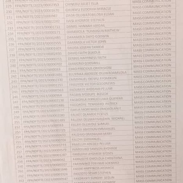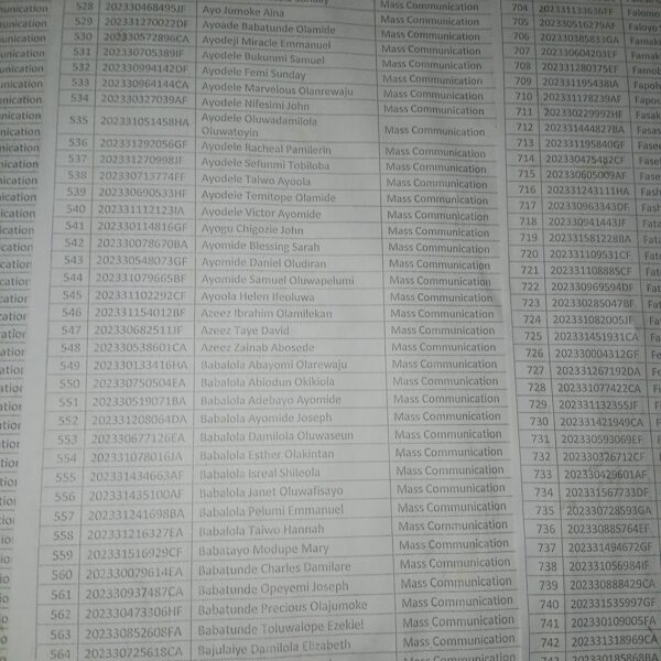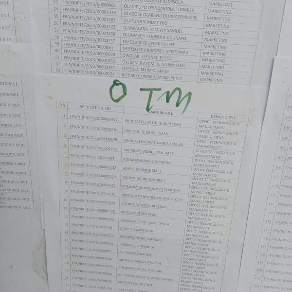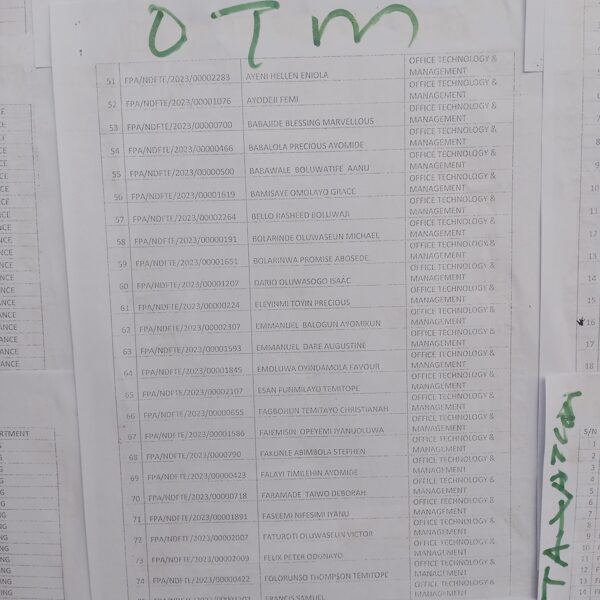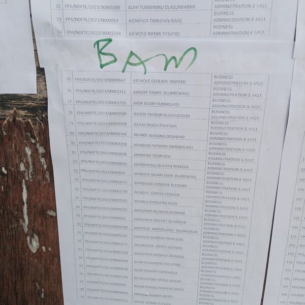 Admission list for HND evening