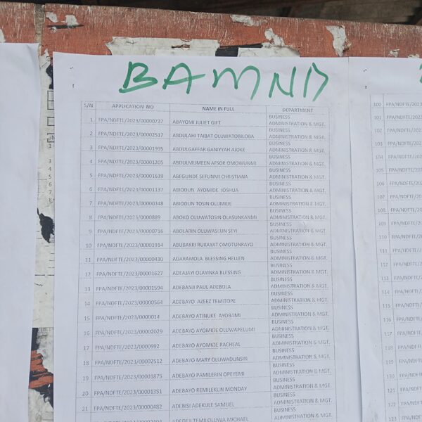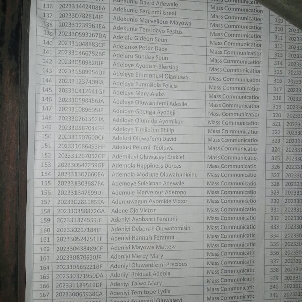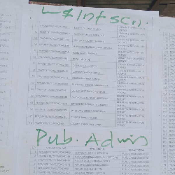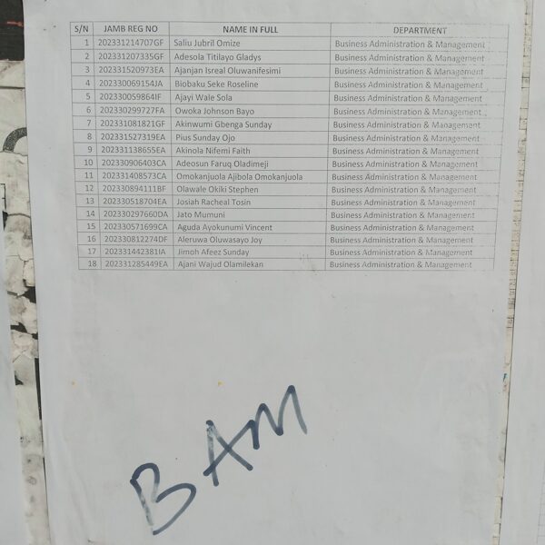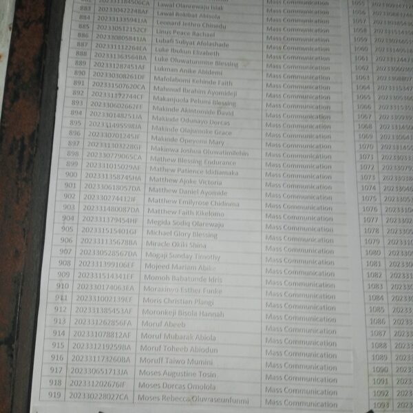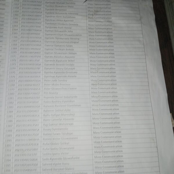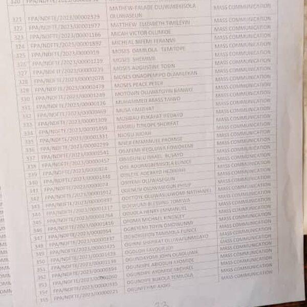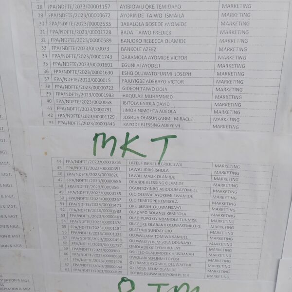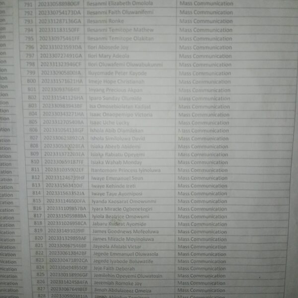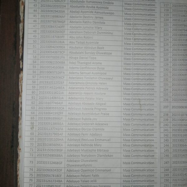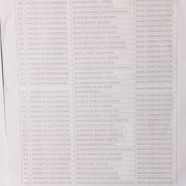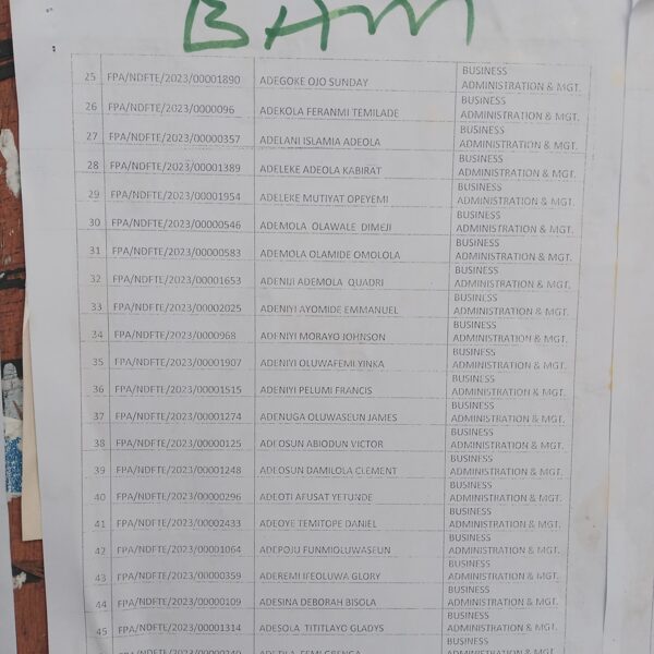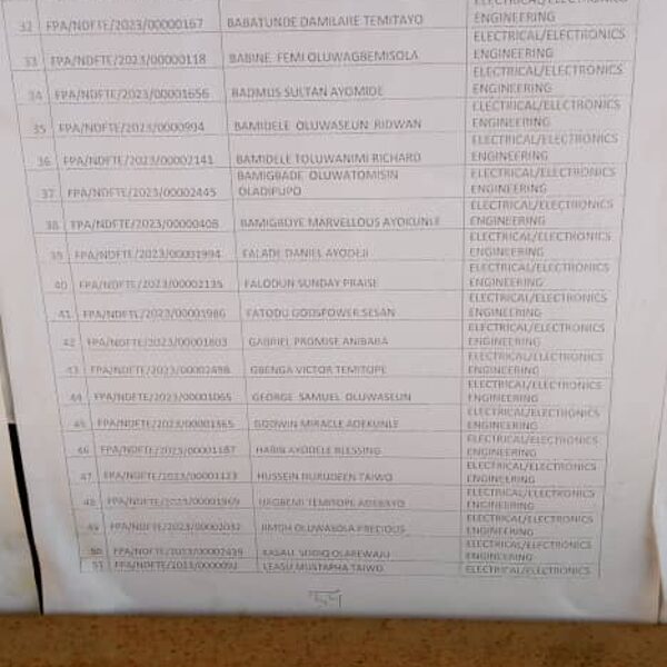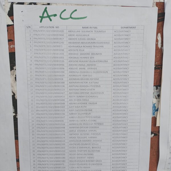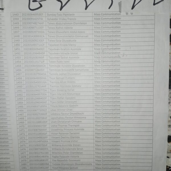Admission list for HND evening