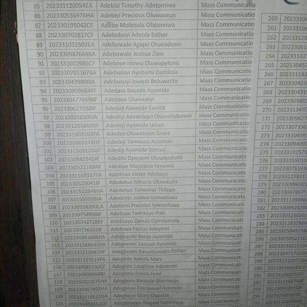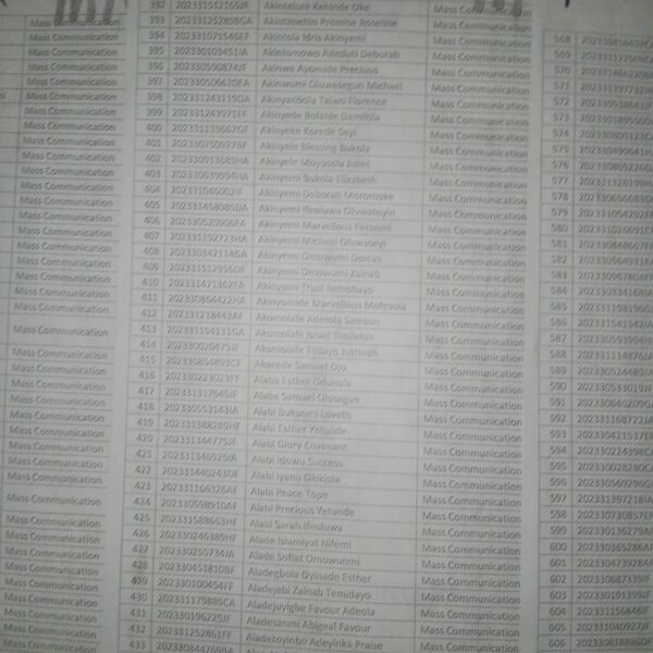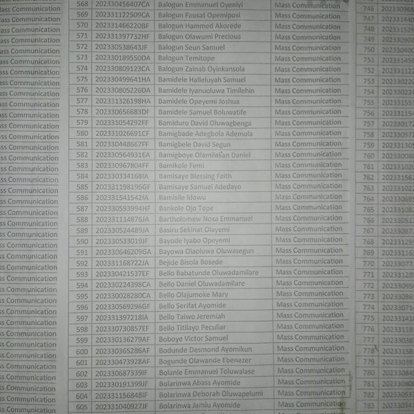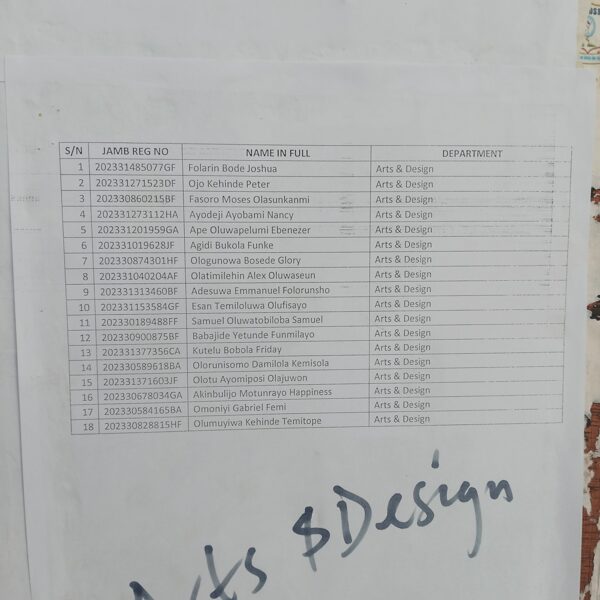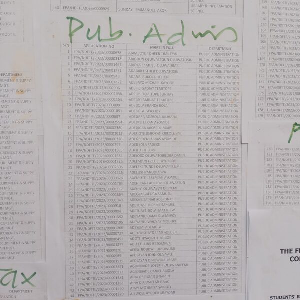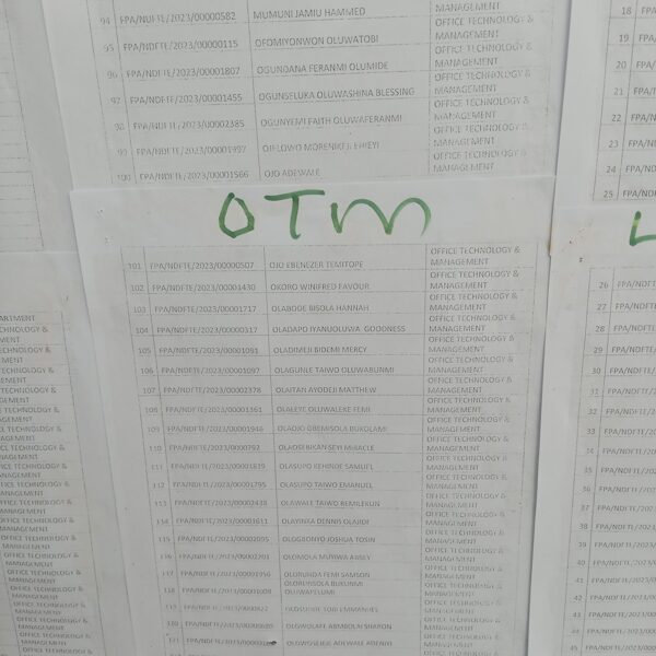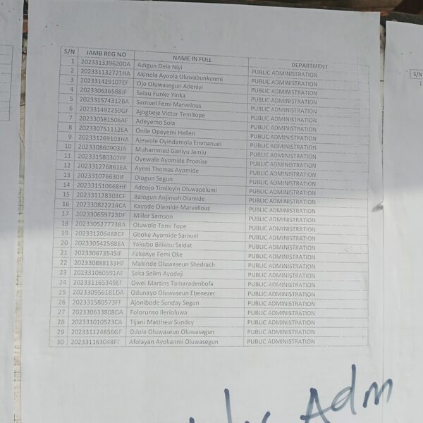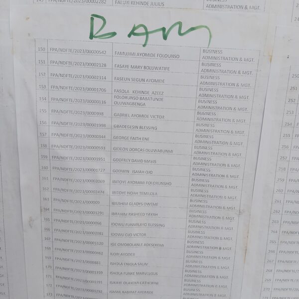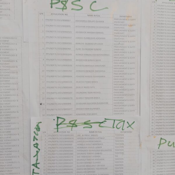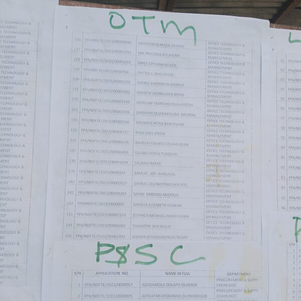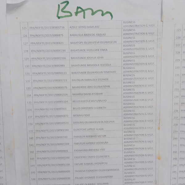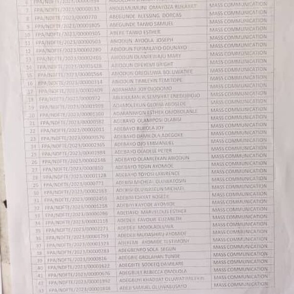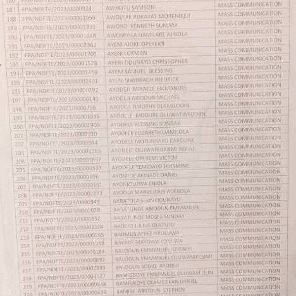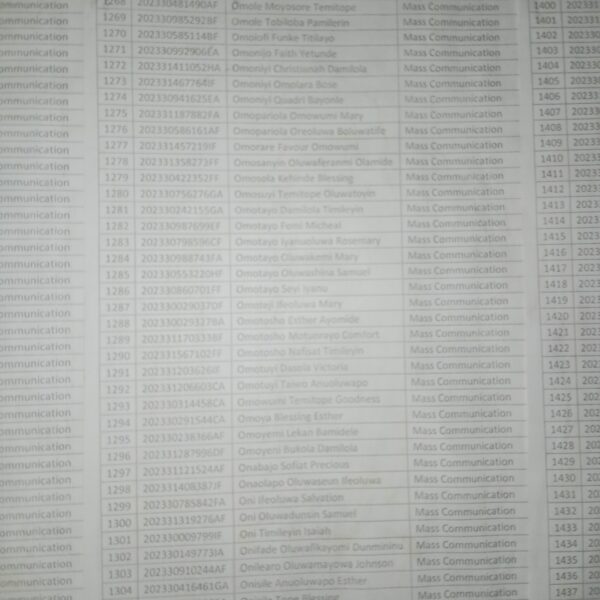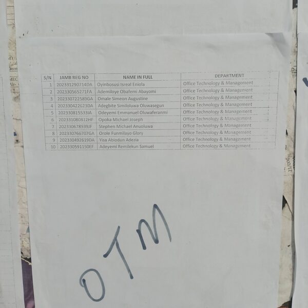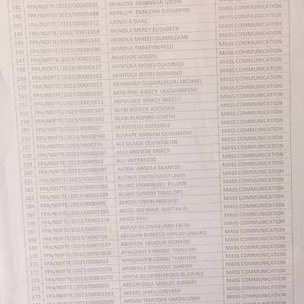 Admission list for HND evening