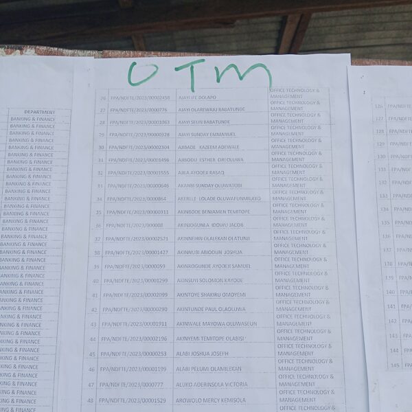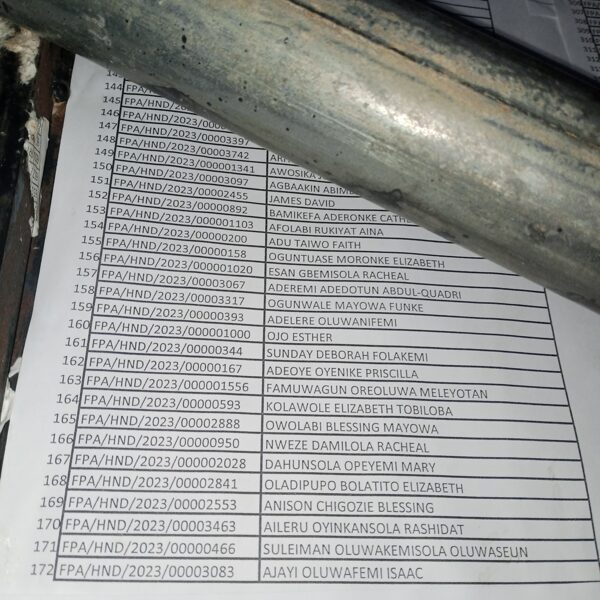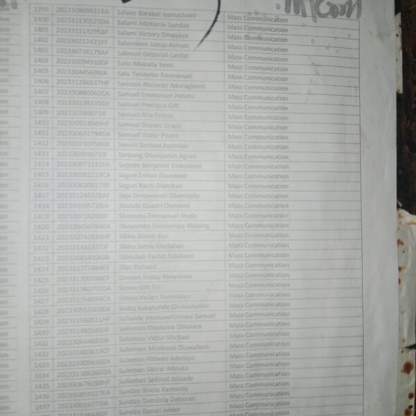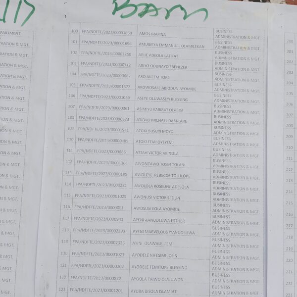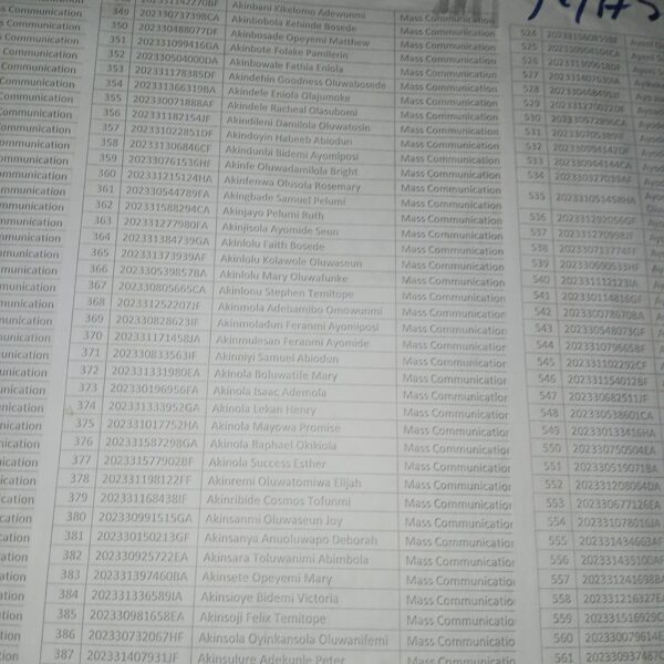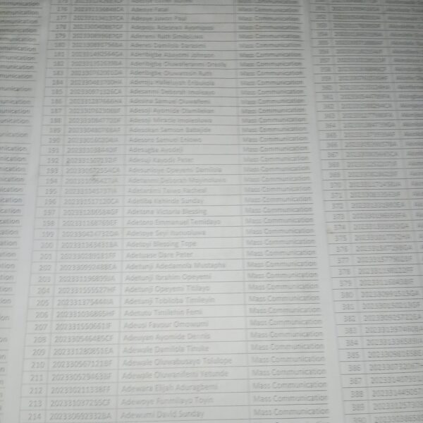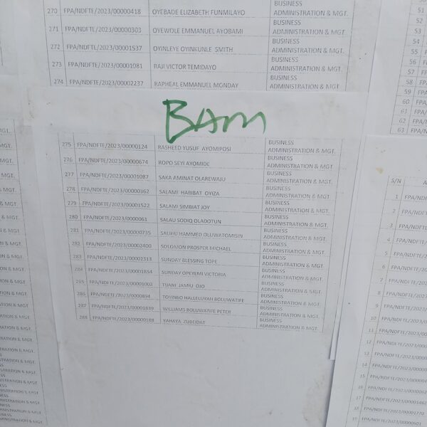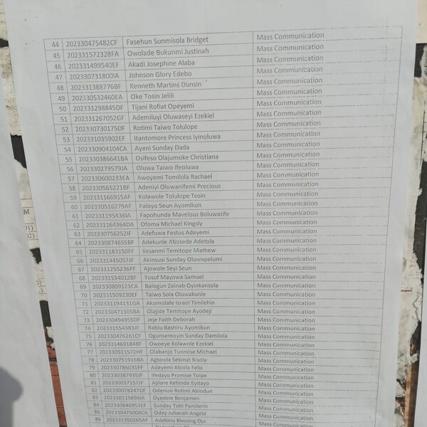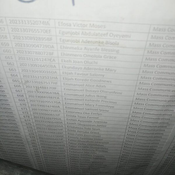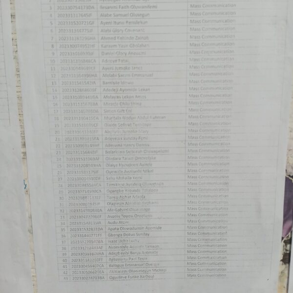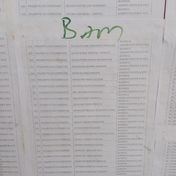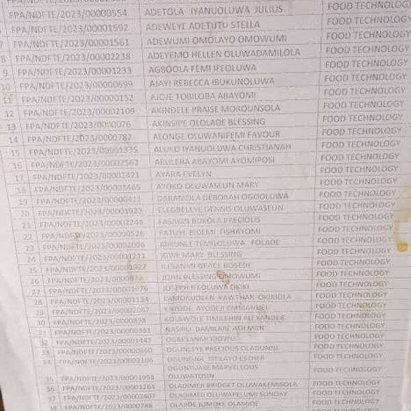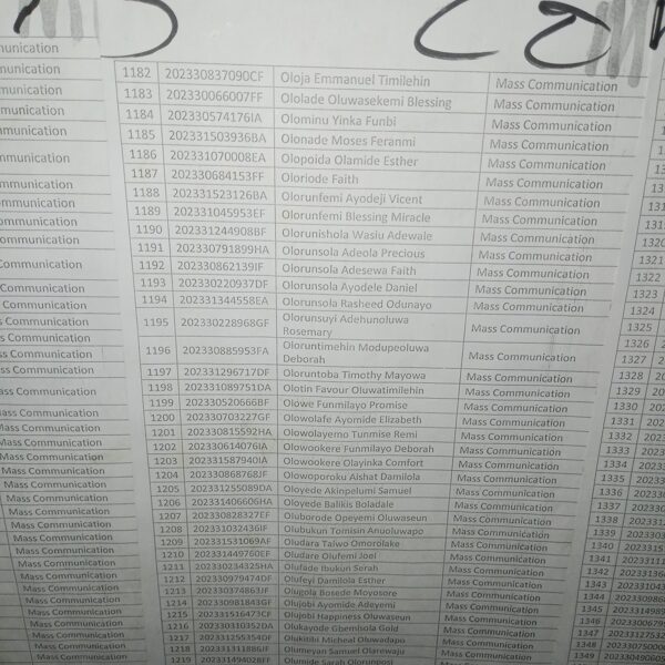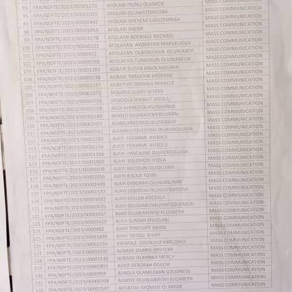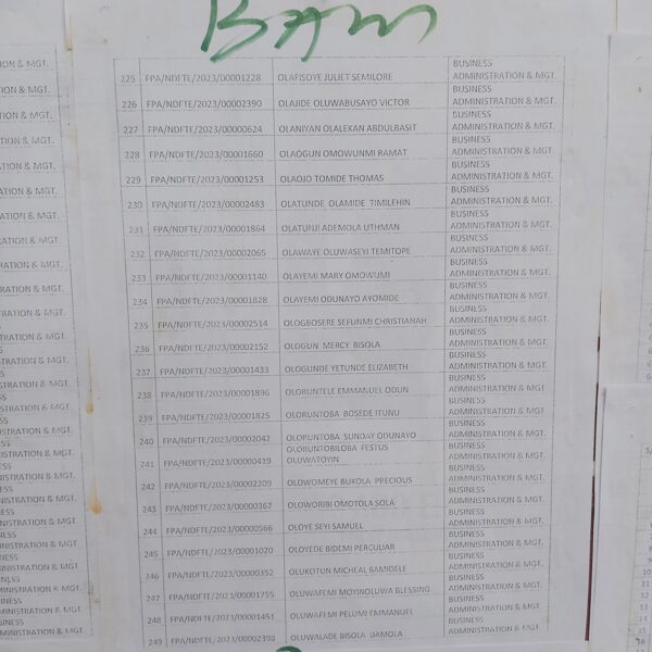 Admission list for HND evening