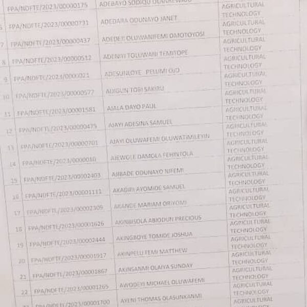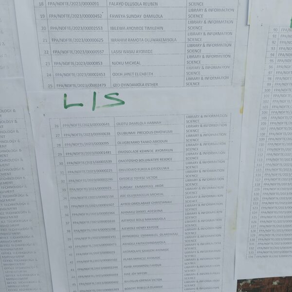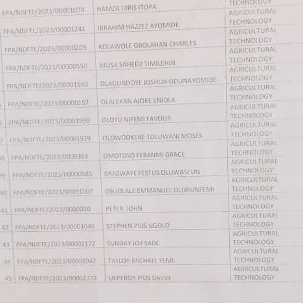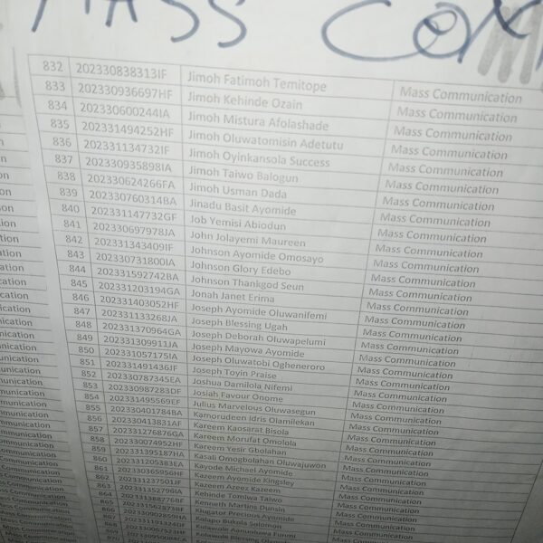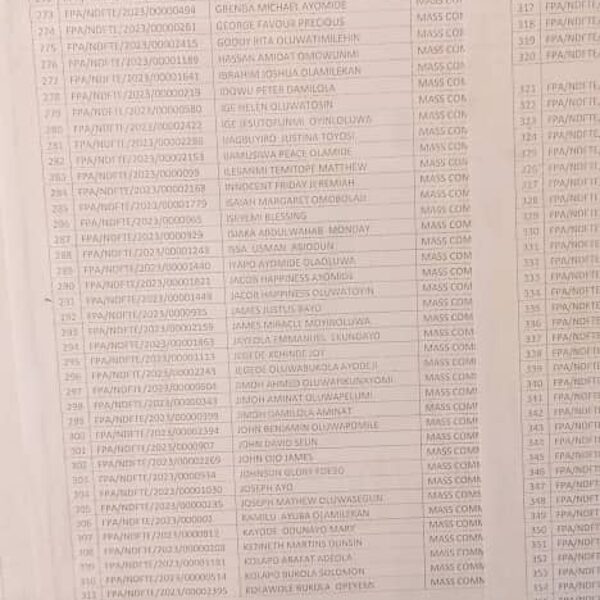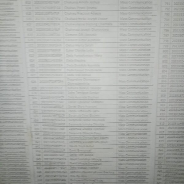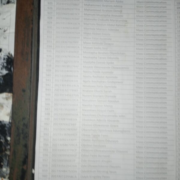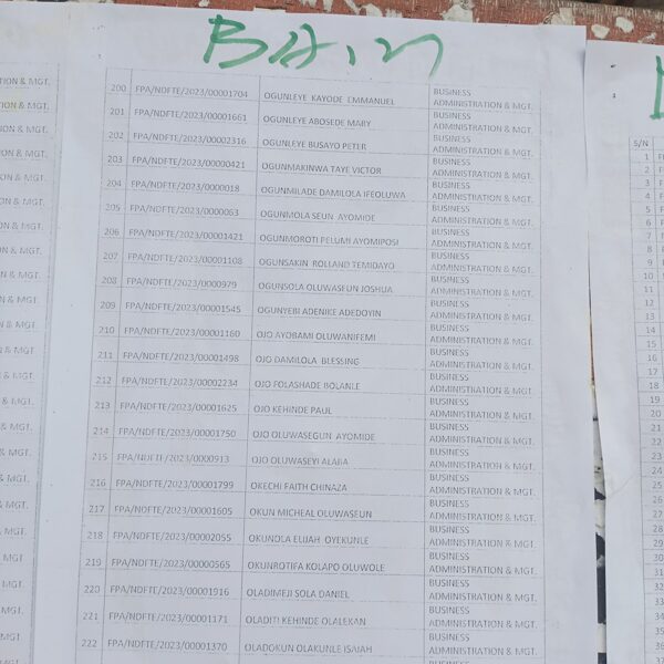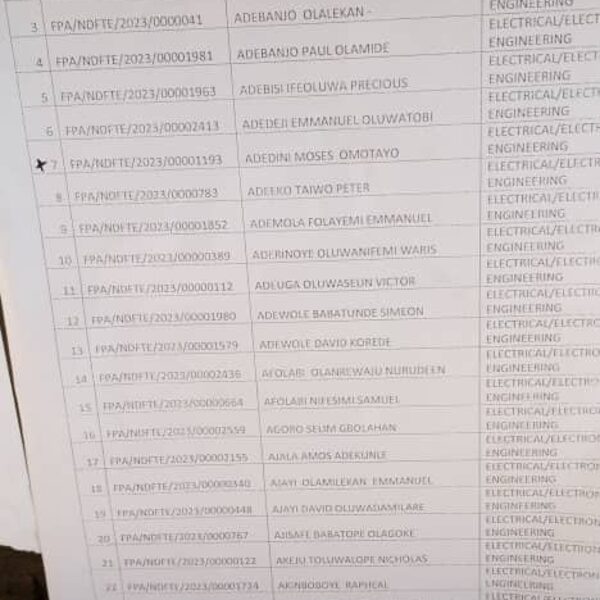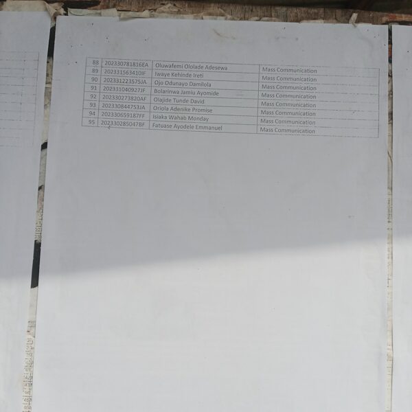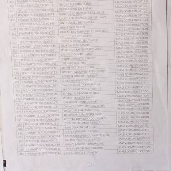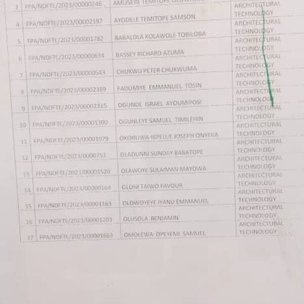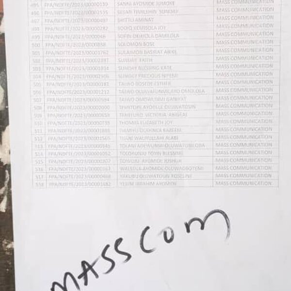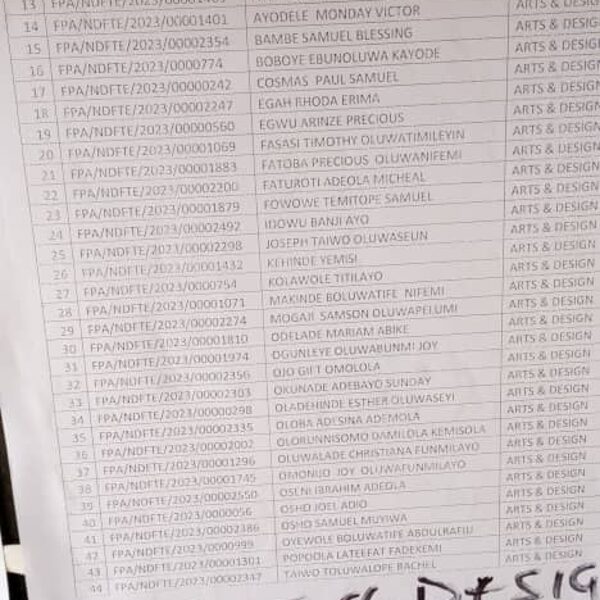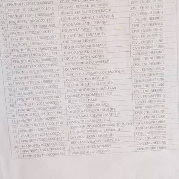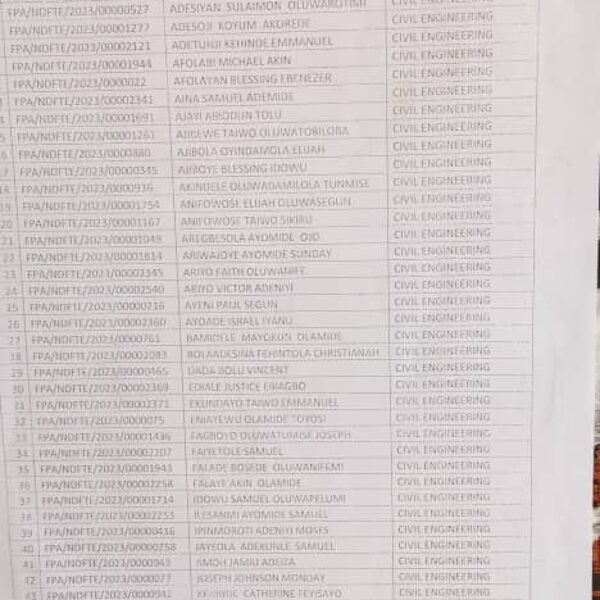 Admission list for HND evening