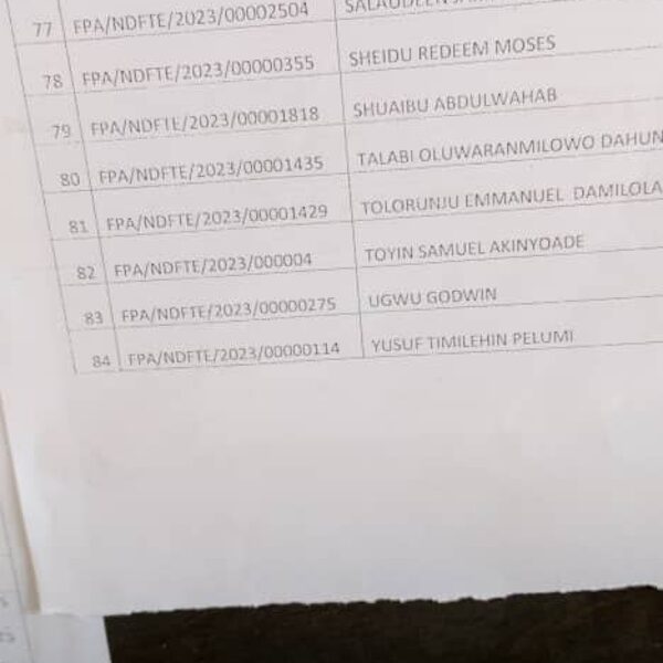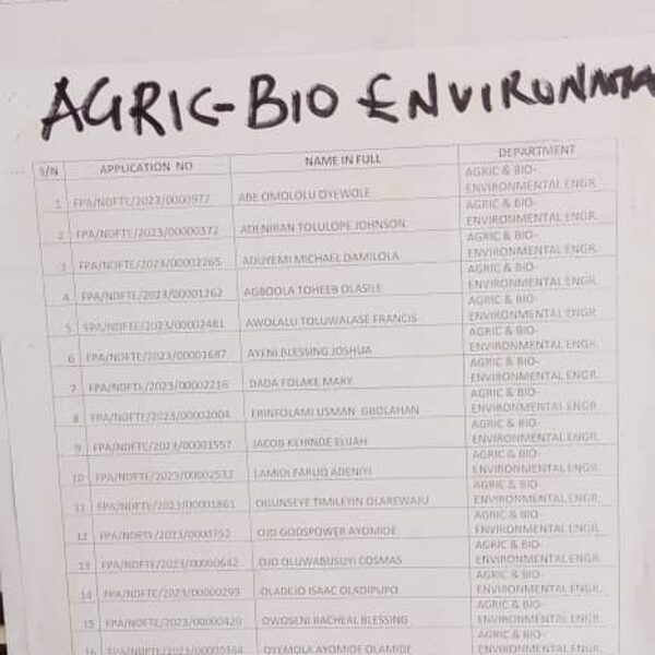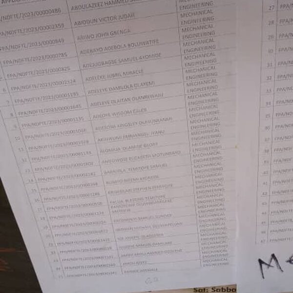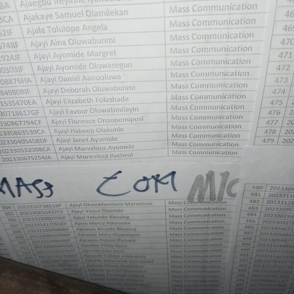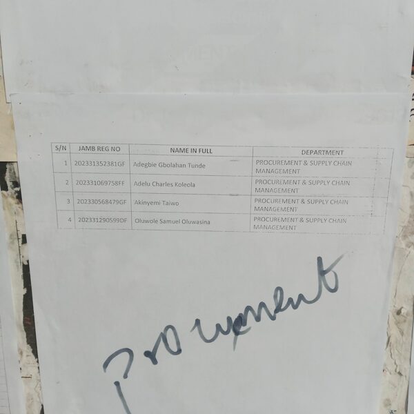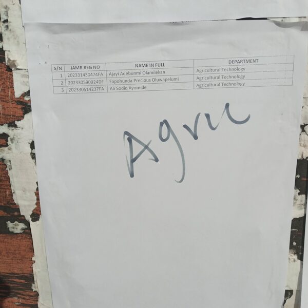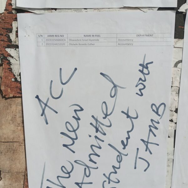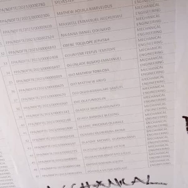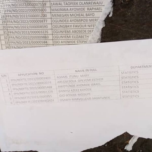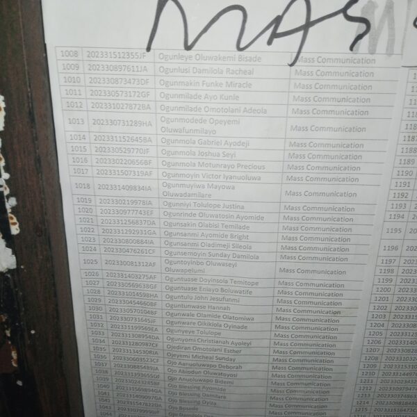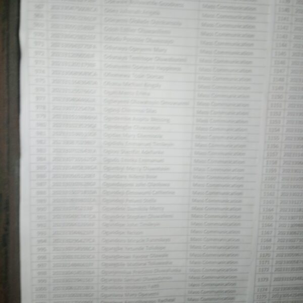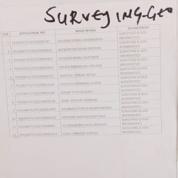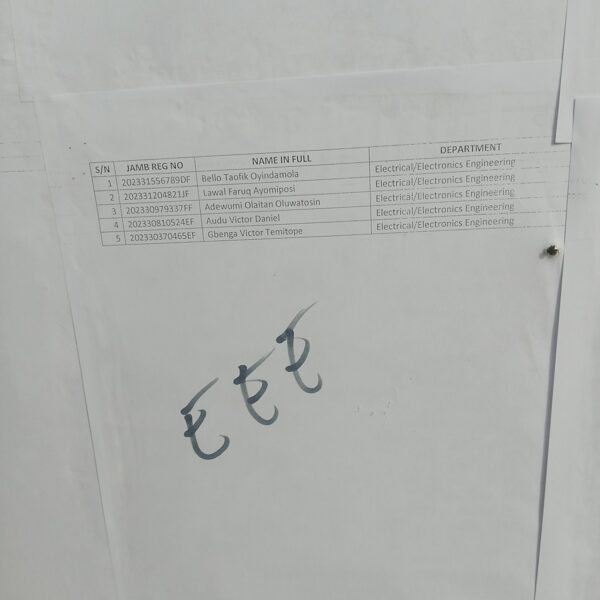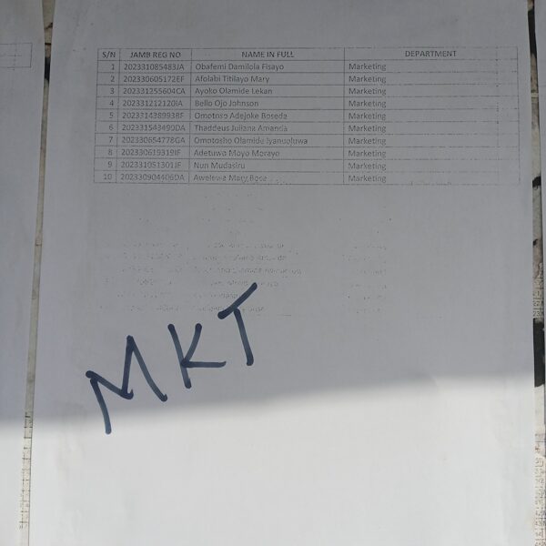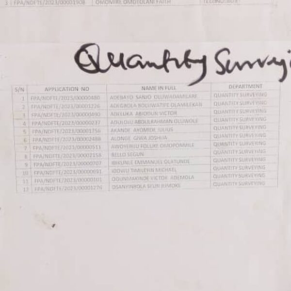 Admission list for HND evening