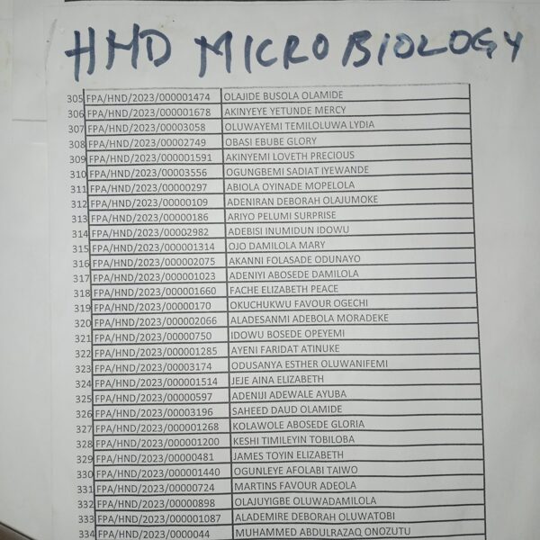 Admission list for HND morning